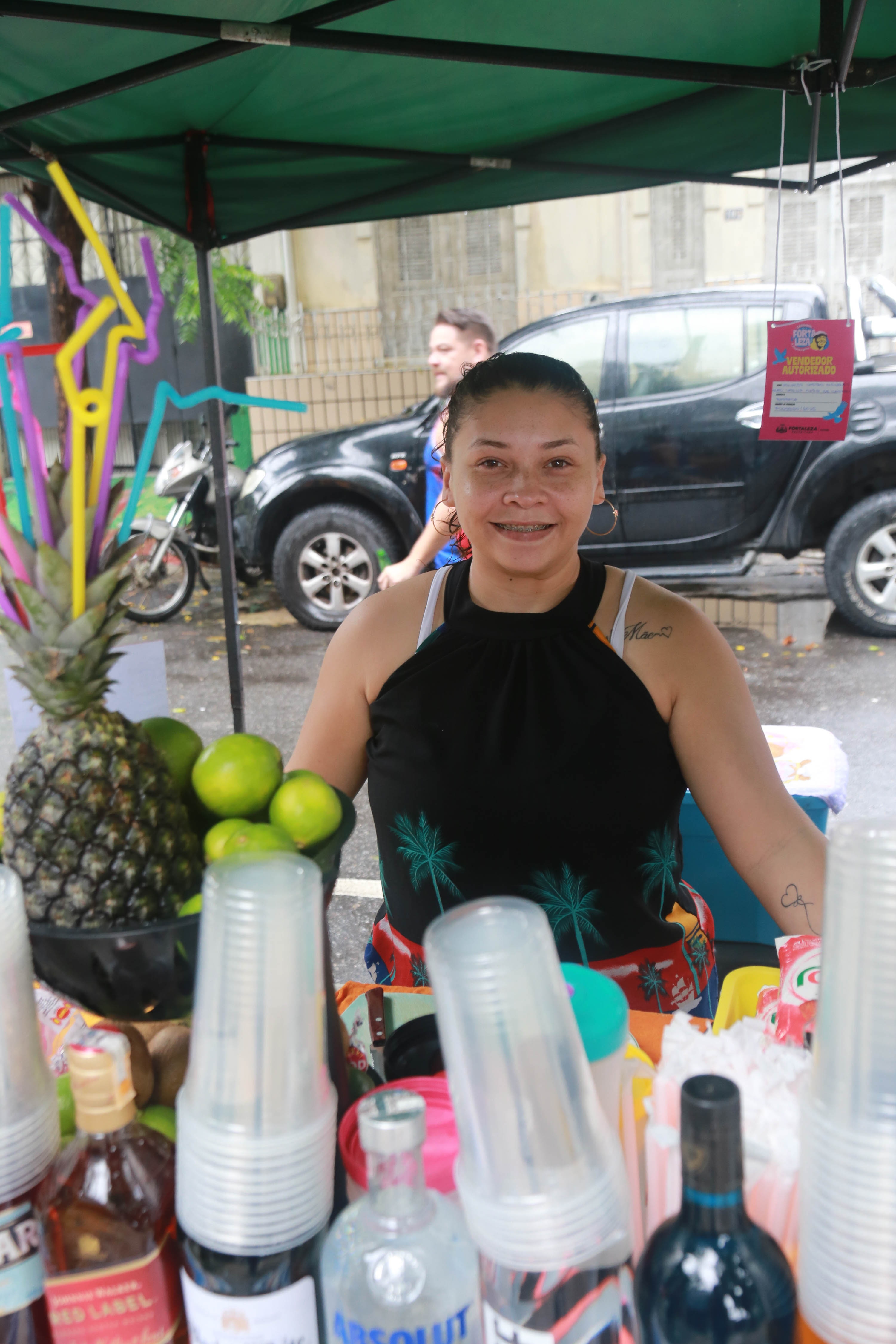 Vendendo bebidas no Mercado dos Pinhões há quatro anos, Jaqueline Freire destaca o grande potencial da festa, capaz de resistir até a fortes chuvas. "Eu espero vender muito. Mesmo com essa chuva, o pessoal vem, e Carnaval é uma época em que a gente ganha mais, dá para tirar o tiplo", calcula, comparando o faturamento com o de outros períodos.