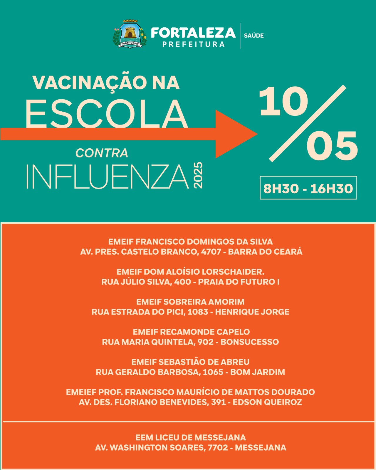 Como reforço à estratégia, a escola municipal Recamonde Capelo, localizada no bairro Bonsucesso e o equipamento estadual, Liceu de Messejana, também estarão abertos para receber alunos, familiares e professores, garantindo a imunização e possibilitando a atualização da caderneta vacinal.