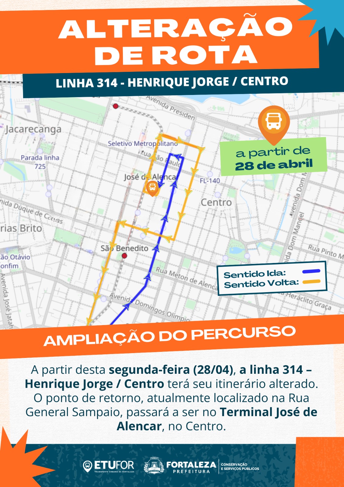 A Empresa de Transporte Urbano de Fortaleza (Etufor) informa que, a partir desta segunda-feira (1º/12), a linha 614 - Curió/Terminal Washington Soares/Messejana passará a adotar a nova nomenclatura 614 - Curió/Parque São Miguel/Messejana. A iniciativa atende ao pedido da comunidade do Parque S...