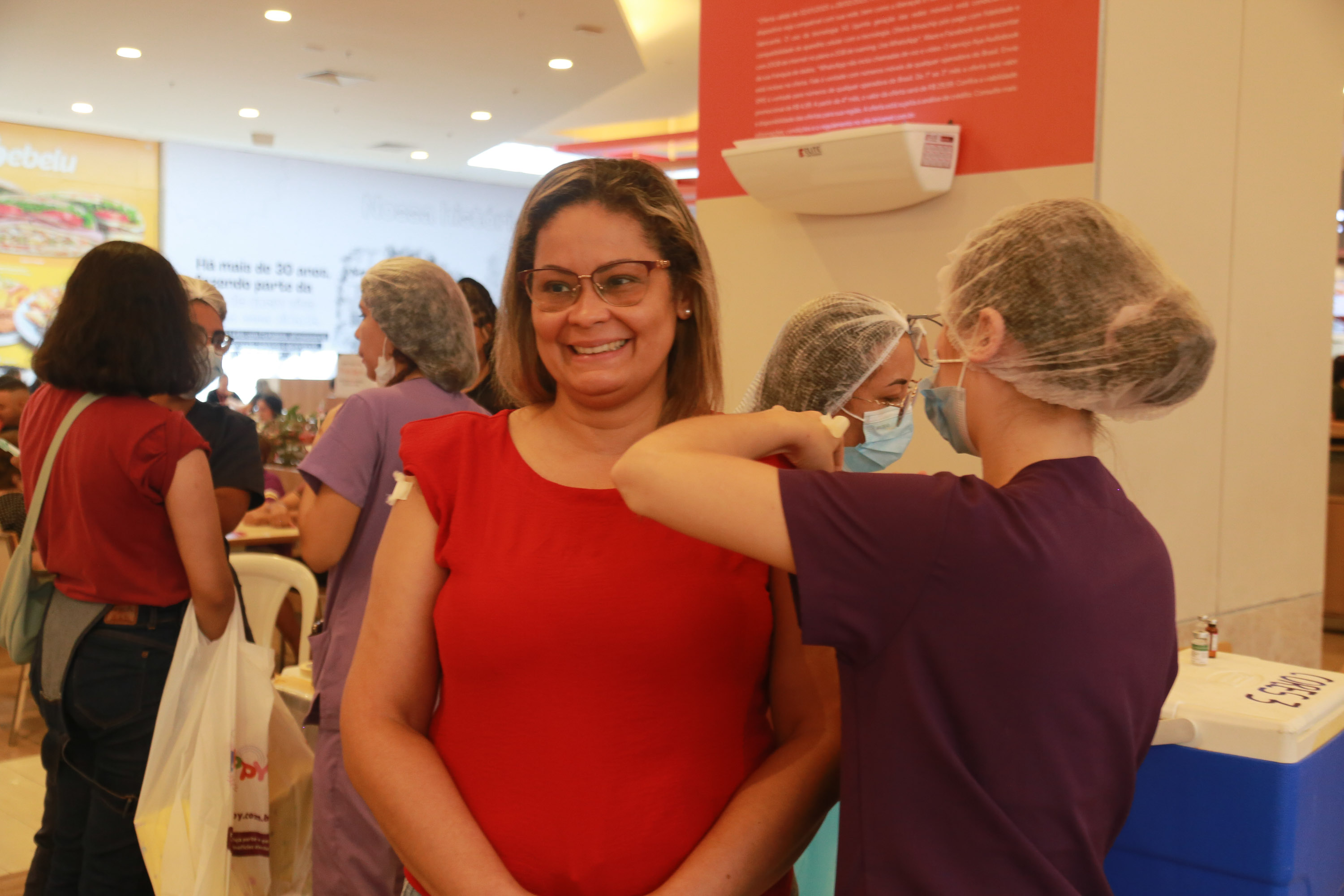 Neste sábado (7/6), os shoppings Benfica, North Shopping Fortaleza e RioMar Fortaleza participaram da iniciativa com espaços para vacinação funcionando durante a tarde. Estratégia prossegue em todos os finais de semana do mês de junho, em diversos centros comerciais da cidade.
