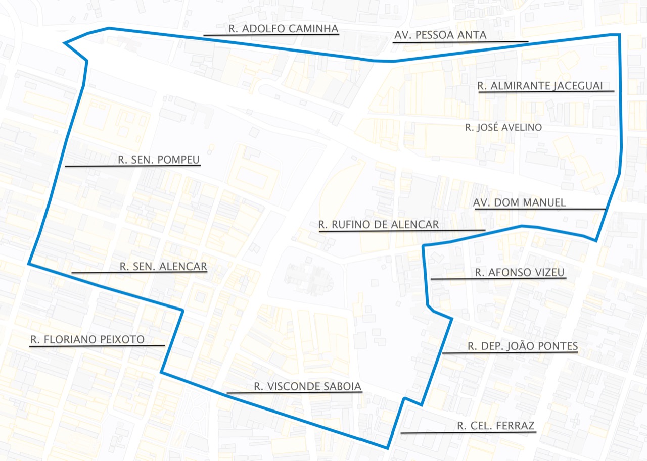 Acesse o mapa da ruas que formam o entorno do comércio que funciona de 6h às 12h
