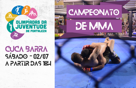 Os alunos da Rede Cuca e outras equipes da comunidade participarão de mais uma atividade esportiva das Olimpíadas da Juventude: o Campeonato de MMA. Realizado pela Prefeitura de Fortaleza, por meio da Coordenadoria de Juventude, o evento acontecerá neste sábado (02/07), a partir das 18h, no pátio do Cuca Barra.