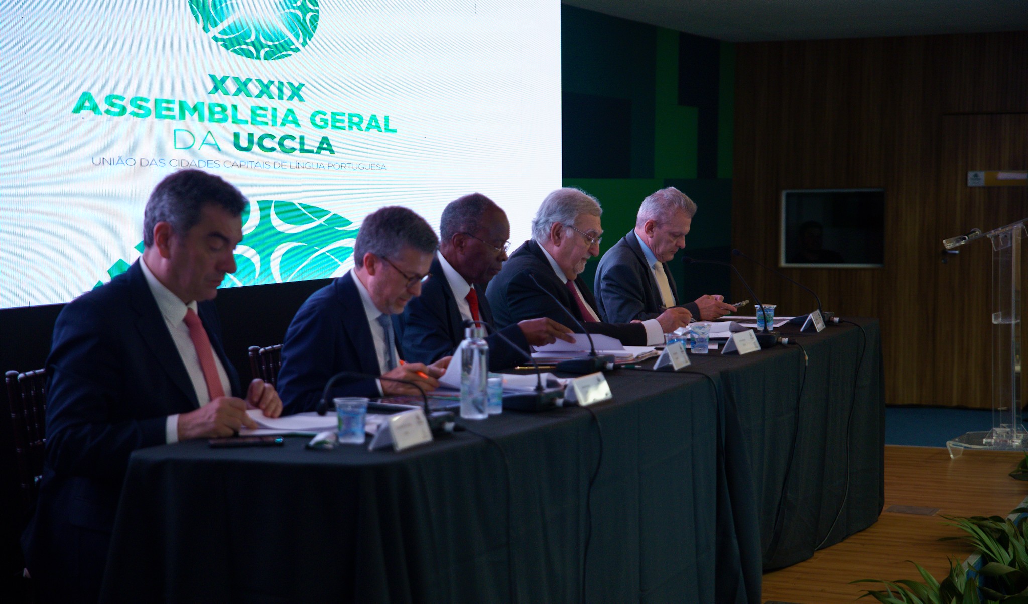 O prefeito José Sarto realizou nesta segunda-feira (20/11) fala de abertura da 39ª Assembleia Geral da União das Cidades Capitais de Língua Portuguesa (UCCLA), no Paço Municipal. O evento ocorreu ao longo de todo o dia e conta com integrantes de 30 cidades de nove países. Além do Brasil, participaram representantes de Portugal, Angola, Moçambique, China, Cabo Verde, Timor Leste, Guiné-Bissau e São Tomé e Príncipe.