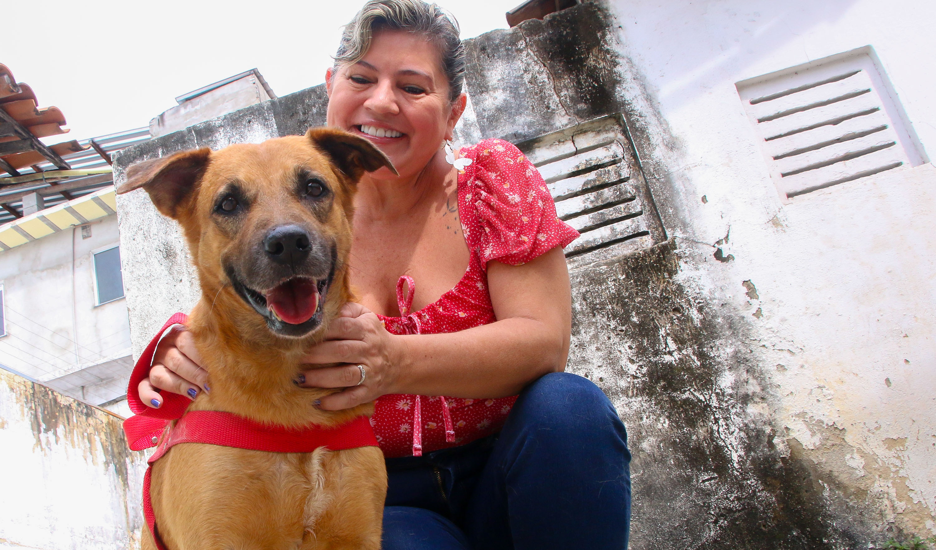 Após sofrer com abandono e rejeição, o vira-lata Grandão agora tem um novo lar graças à campanha Adotar é o Bicho, lançada nas redes sociais da Prefeitura de Fortaleza. Simone Ivo, nova tutora do Grandão, conheceu a iniciativa no Instagram da campanha e logo se encantou por ele. “Eu vi a postagem da Prefeitura e foi amor à primeira vista”, conta. Ela logo entrou em contato com a Coordenadoria Especial de Proteção e Bem-Estar Animal (Coepa) que faz a intermediação com ONGs e protetores de animais independentes, responsáveis pelo animal durante o processo de adoção. A nova tutora ainda destaca o cuidado e atenção da Coordenadoria em cada etapa. “Meu contato com a Coepa foi super atencioso, em momento nenhum houve negligência ou demora na resposta”, ressalta Simone.