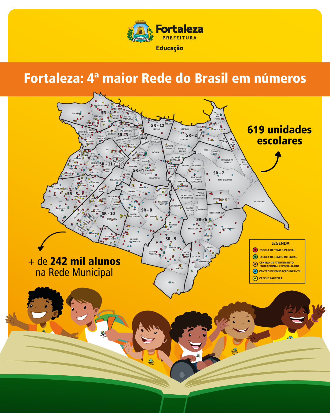 A cada dia são executadas e fortalecidas ações de valorização voltadas aos profissionais, de incentivo ao protagonismo estudantil, apoio e suporte pedagógico, assim como a ampliação, com a construção de novos equipamentos, e a requalificação das unidades escolares que compõem o parque escolar. Ao todo, a gestão do prefeito Sarto já entregou à população de Fortaleza 24 novos Centros de Educação Infantil, 6 Escolas de Tempo Integral e 2 Escolas de Tempo Parcial. Atualmente, o parque escolar da Rede Municipal conta com 619 unidades. Em 2012, o número era de apenas 449 para um total de 191.233 alunos.