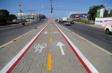 A cidade de Fortaleza ganhou uma nova ciclofaixa e um novo trecho de faixa exclusiva para ônibus, neste domingo (13/03). O prefeito Roberto Cláudio inaugurou a nova ciclofaixa da Avenida Juscelino Kubitschek e a faixa exclusiva de ônibus, com extensão de 2,5 quilômetros por sentido, situados entre a rotatória do Castelão e a Av. Presidente Costa e Silva (Perimetral).