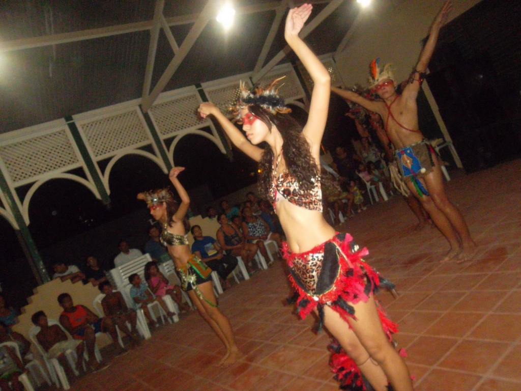 O espetáculo é resultado de oficinas que os alunos da Associação Cultural Rita Costa vivenciaram no Maracatu e no Bois de Parintins. São 18 jovens que fazem alusão à cultura afro e indígena, trazendo elementos como pajé, cunhãs, índios e negros, em perfomances e rituais que misturam luz, som e cores de uma cultura miscigenada.