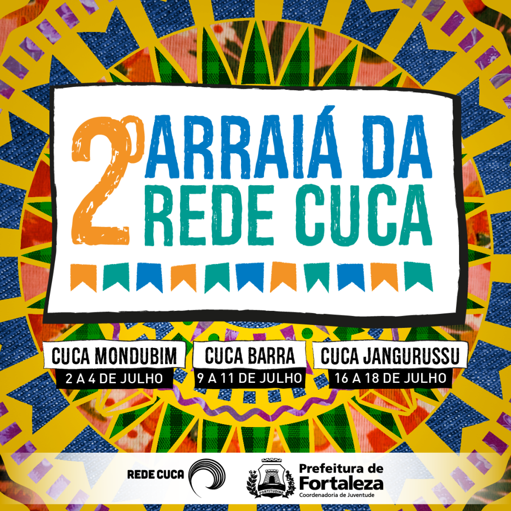 Julho também é mês de quadrilha. Na Rede Cuca, os equipamentos municipais da Barra do Ceará, Jangurussu e Mondubim levarão, de 4 a 18 de julho, uma programação com apresentações de quadrilhas, mostra de casamento matuto, forró pé-de-serra, grupos de dança popular, comidas típicas e artesanatos regionais. O Cuca Mondubim será o primeiro a receber a festa do II Arraiá da Rede Cuca, a partir desta quinta-feira (2) até sábado (4). Entre os dias 9 e 11 de julho, será a vez do Cuca Barra, e, de 16 a 18 de julho, o Cuca Jangurussu.