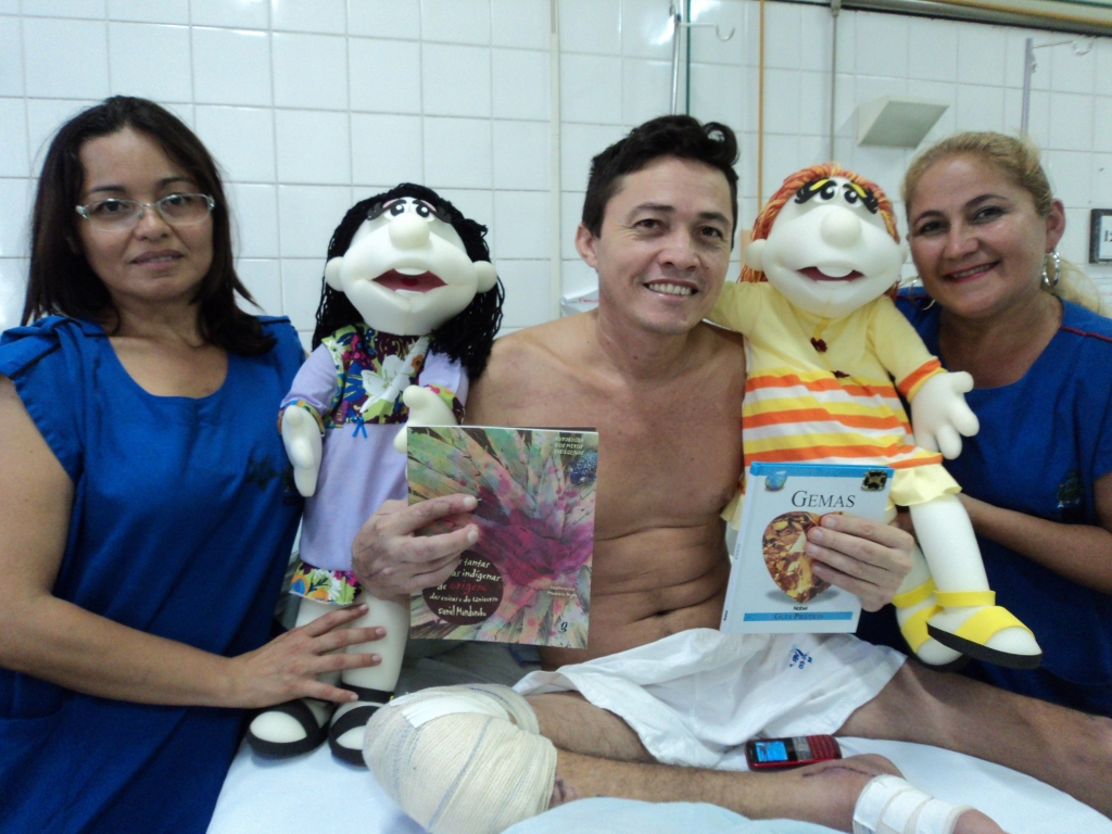 Já Francisco Oliveira, um paciente bem humorado que está internado no IJF desde janeiro deste ano quando foi vítima de um acidente de moto, era só sorriso para a Doutora Saúde e Professora Letrinhas. Francisco, que é vendedor de porta em porta de produtos naturais, não é muito acostumado a ler, mas escolheu dois livros que vieram no carrinho do projeto Saúde com Letras. “Elas chegam aqui na enfermaria com tantos livros e passando tanta alegria pra gente que dá até vontade de ler”, diz Francisco.