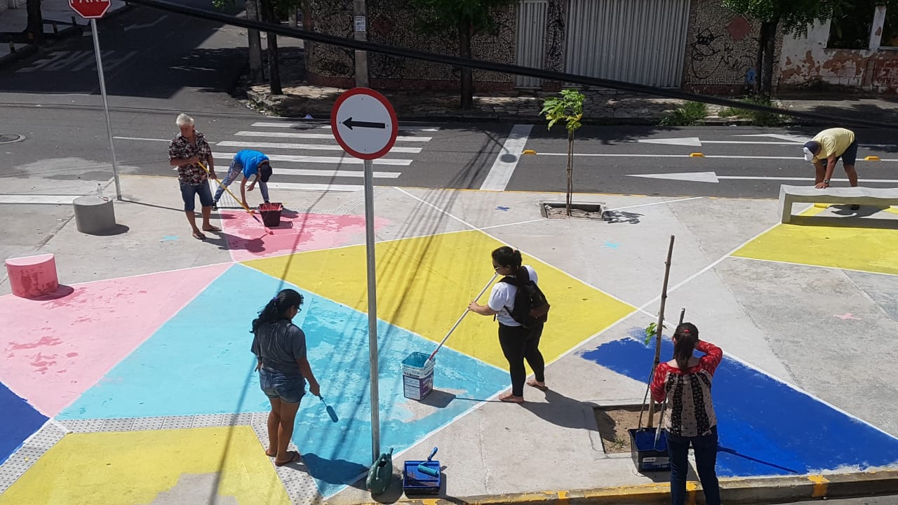 Um novo espaço para o convívio comunitário está disponível para moradores e visitantes do bairro Praia de Iracema, entre as ruas João Cordeiro e Padre Climério, nas proximidades do bar Teresa e Jorge. O projeto, parte da programação do Maio Amarelo com foco nos pedestres, resgatou uma área subutilizada de asfalto que agora ganhou nova possibilidade de uso, com uma área de praça com 200 m², três faixas de pedestres convencionais e uma elevada, quatro bancos de concreto, plantio de seis mudas de árvores nativas, prolongamento de calçada e nova iluminação. A iniciativa revitaliza a região e também oferece mais segurança viária para as pessoas que caminham no entorno. Moradores da área participaram da pintura lúdica aplicada ao piso da nova praça.