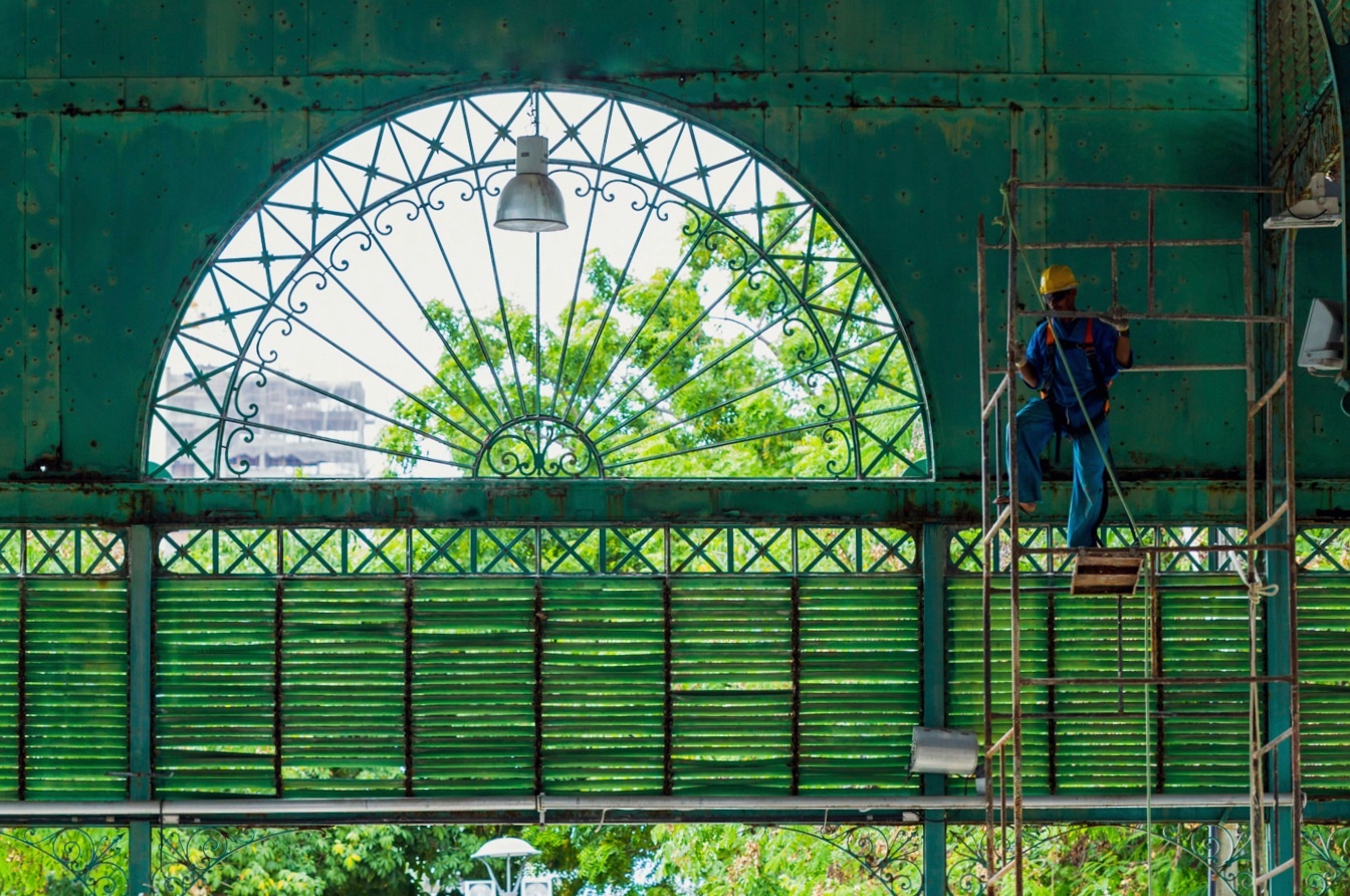A Secretaria Municipal da Cultura de Fortaleza (Secultfor) realiza um trabalho de manutenção preventiva no Mercado dos Pinhões, equipamento histórico localizado no Centro de Fortaleza. Ao longo desta semana, os vitrais que decoram o mercado de ferro foram removidos visando à segurança do espaço. Reparos na estrutura elétrica do equipamento também estão sendo realizados neste período.