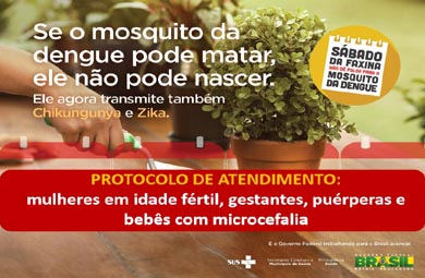 Foi lançado ontem, pelo Ministério da Saúde Protocolo de Atenção à Saúde para Microcefalia. Entre as principais recomendações estão a busca ativa de mulheres em idade fértil e com suspeita de gravidez, além da ampliação ao acesso a testes rápidos. O planejamento prevê a mobilização de gestores, especialistas e profissionais de saúde para promover a identificação precoce e os cuidados especializados da gestante e do bebê.