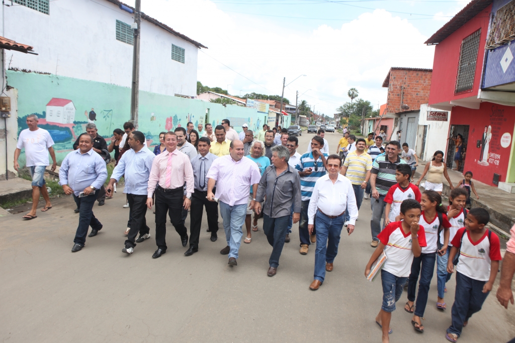 Prefeito Roberto Cláudio percorreu a área verificando a pavimentação e calçamento realizados no bairro