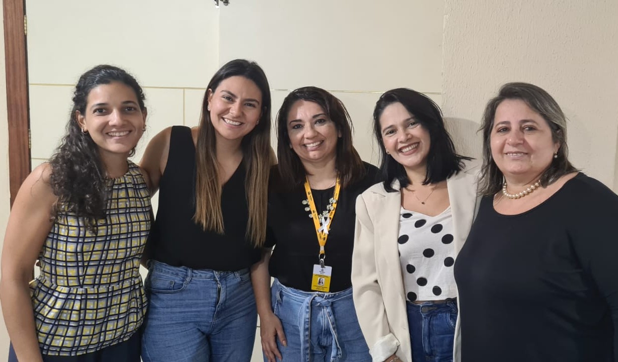 Enilce Vieira, gerente da Célula de Gestão do Sistema Único de Assistência Social (SDHDS); Guilhermina Fernandes, gerente da Célula de Proteção Básica (SDHDS) e Rosangela Soares, multiplicadora estadual do Programa Primeira Infância no Suas/Criança Feliz (SPS), explicaram às pesquisadoras como acontece a distribuição territorial dos educadores e agentes comunitários de Saúde, a frequência de visitas, a supervisão e capacitação permanente dos profissionais, assim como a remuneração por metas, dados que subsidiarão a análise das pesquisadoras.
