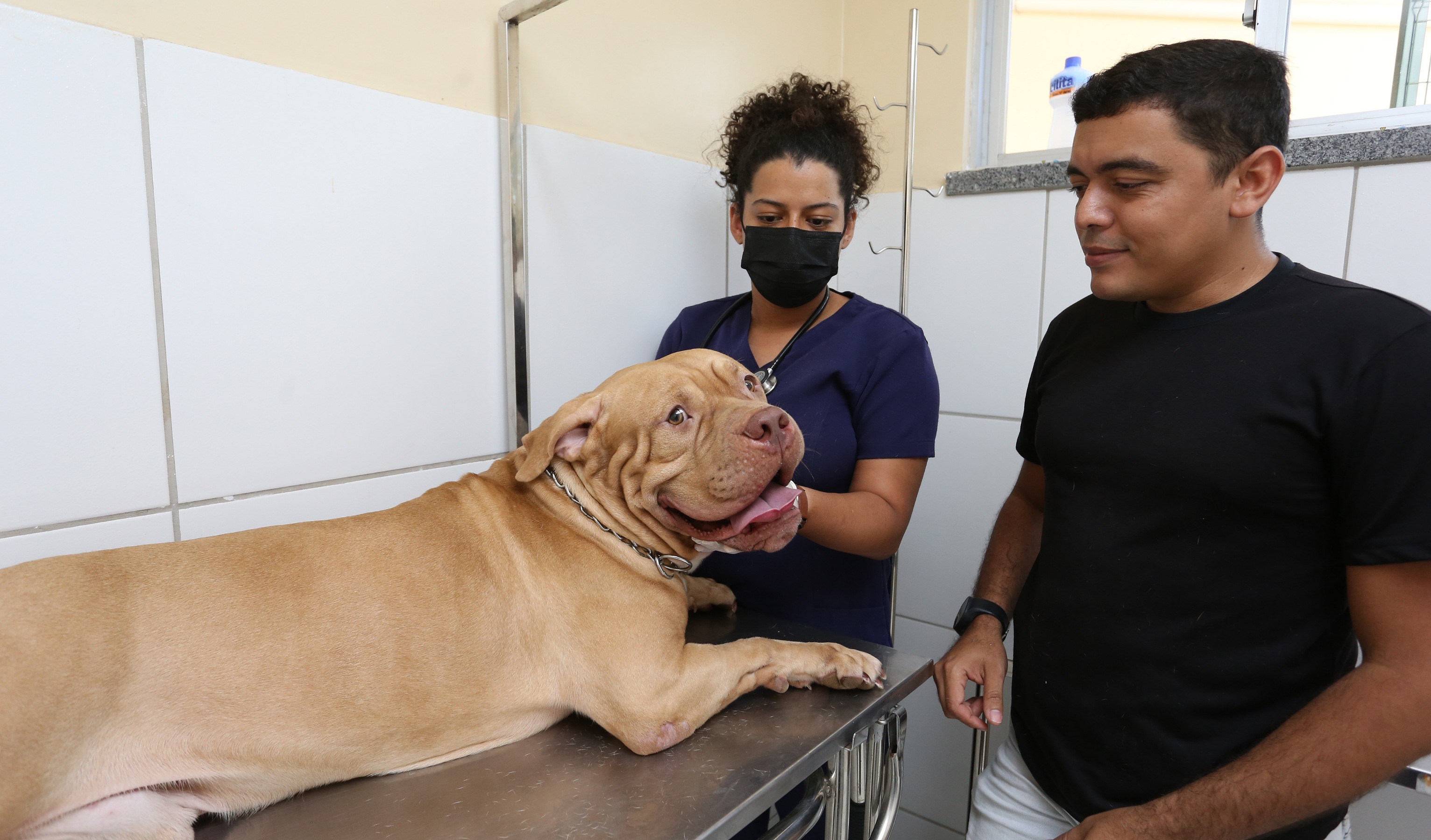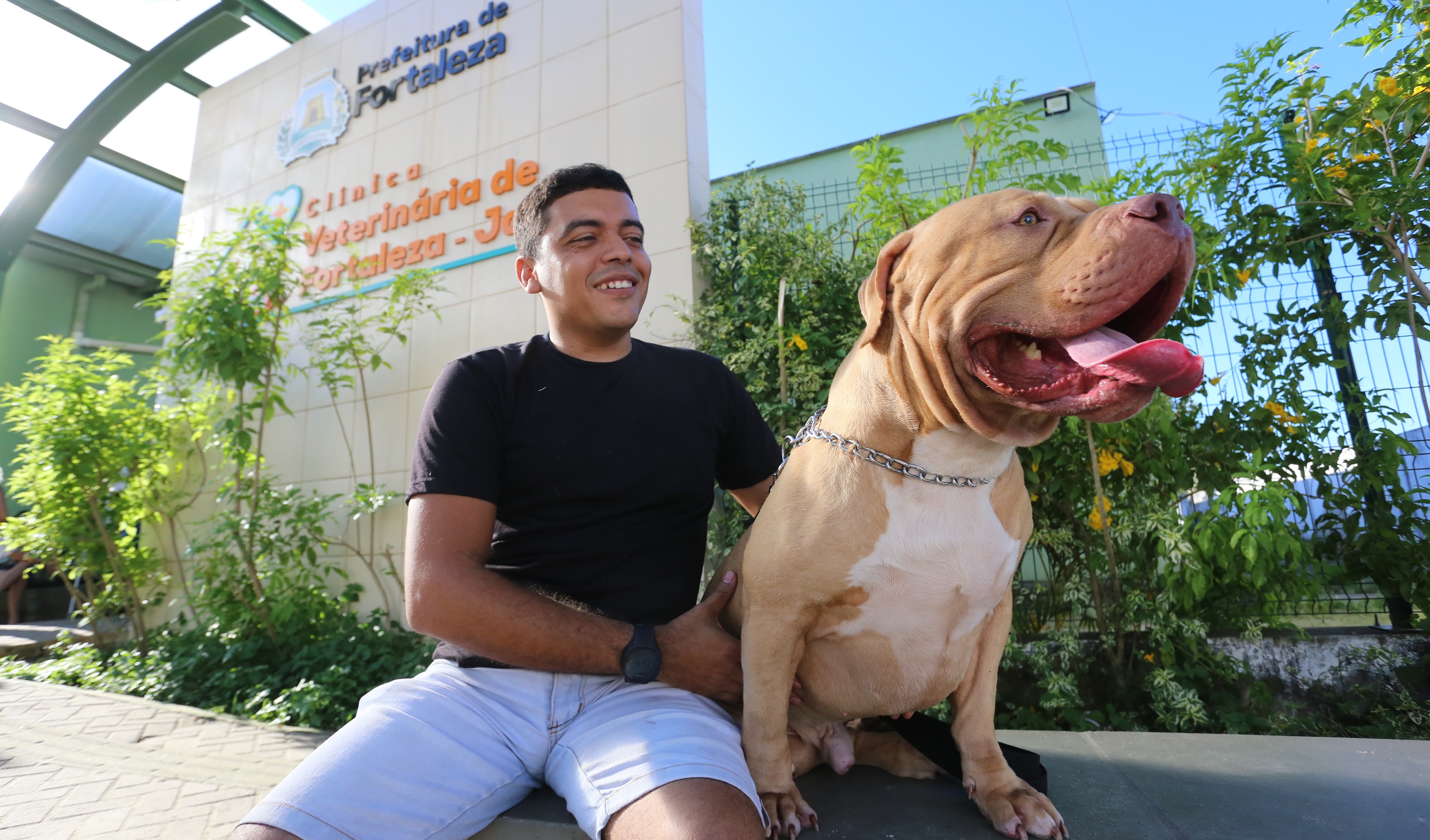 Ao doar sangue na Clínica Veterinária de Fortaleza - Jacó, equipamento da Prefeitura de Fortaleza, o cachorro Björn, da raça Pit Monster, ganhou uma bateria de exames gratuitos para garantir uma transfusão segura. “É excelente. Um check-up completo na saúde do seu pet”, elogia Hagamenon Júnior, tutor do cão.