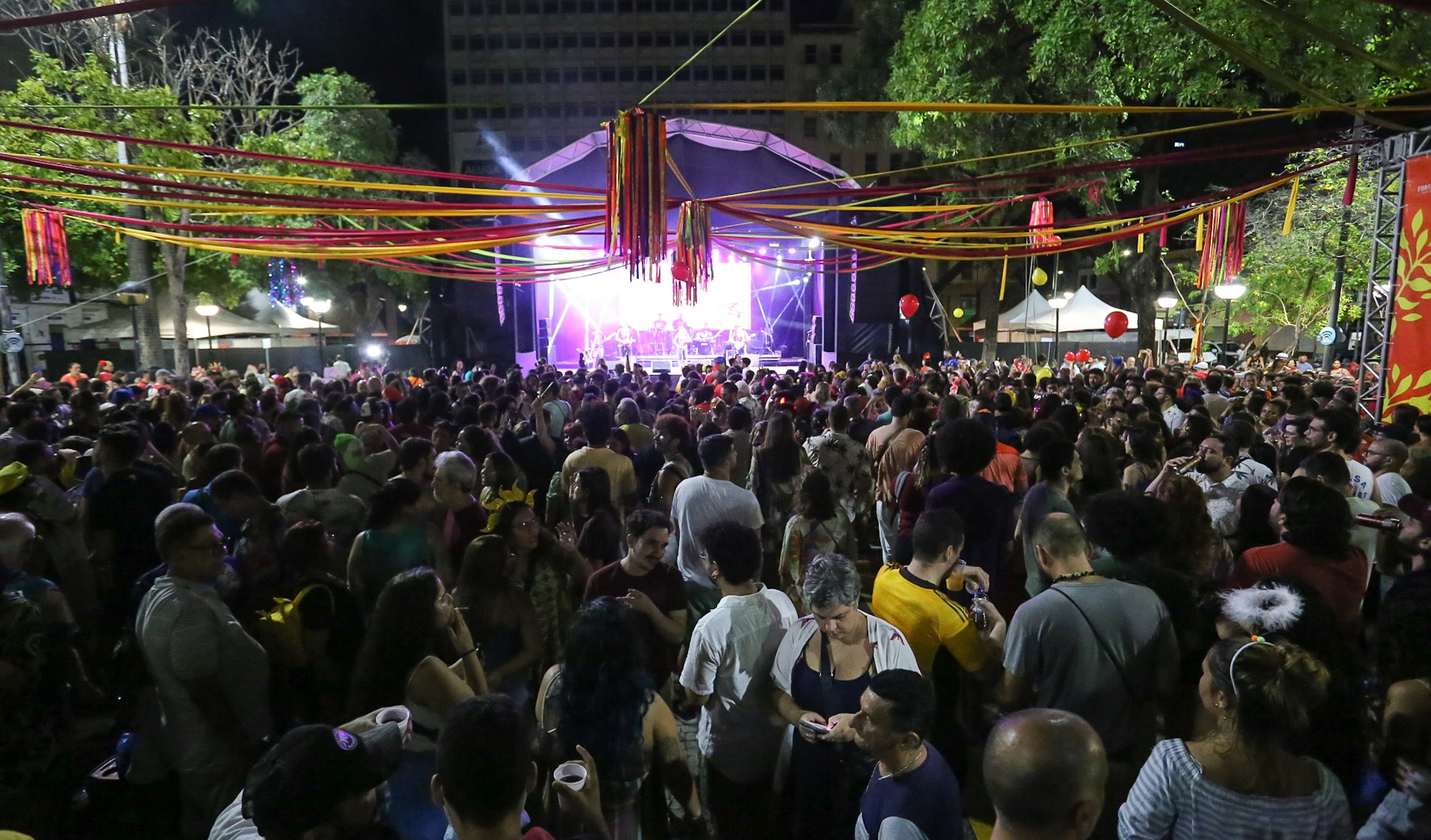 Foliões de todos os cantos da cidade se reuniram nesta sexta-feira (20/01), na Praça do Ferreira para a primeira noite do Ciclo Carnavalesco 2023. Os brincantes curtiram a volta da festa após uma pausa de dois anos por conta da pandemia ao som da banda de axé baiano Ara Ketu e do bloco de carnaval cearense Luxo da Aldeia.