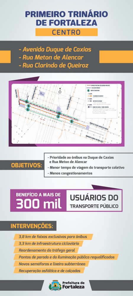 Na região do trinário, compreendido pelo quadrilátero formado pelas avenidas Duque de Caxias, Padre Ibiapina e as ruas Meton de Alencar e Nogueira Acioli, haverá melhoria da iluminação pública. Os pontos de parada de ônibus também serão requalificados, seja por iluminação específica onde houver necessidade, ou com a implantação de abrigos onde houver largura suficiente de calçada.