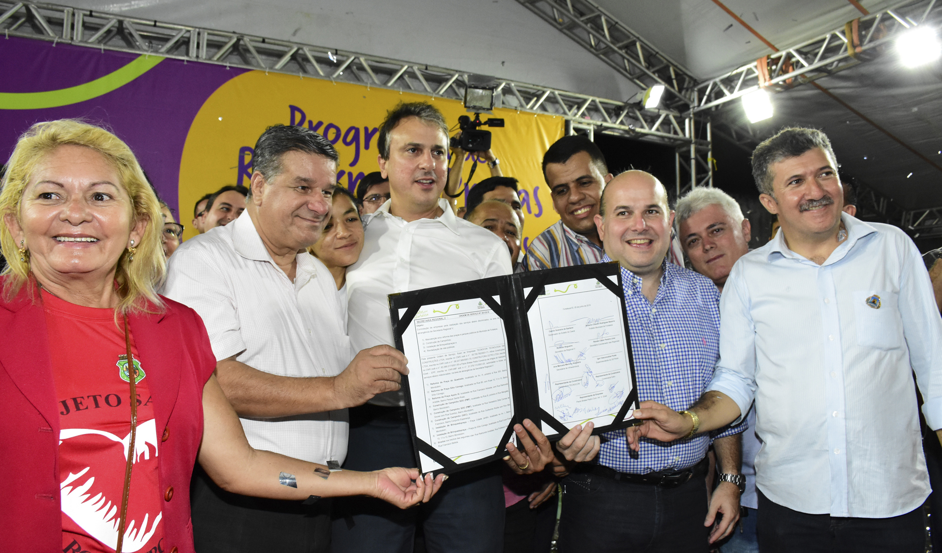 O Prefeito Roberto Cláudio e o governador Camilo Santana assinaram a Ordem de Serviço que autoriza a requalificação de praças e a implantação de Areninhas, Mini Areninhas, brinquedopraças e equipamentos de ginástica em bairros da Regional V. O evento ocorreu nesta terça-feira (05/06) no bairro Parque Santa Rosa.