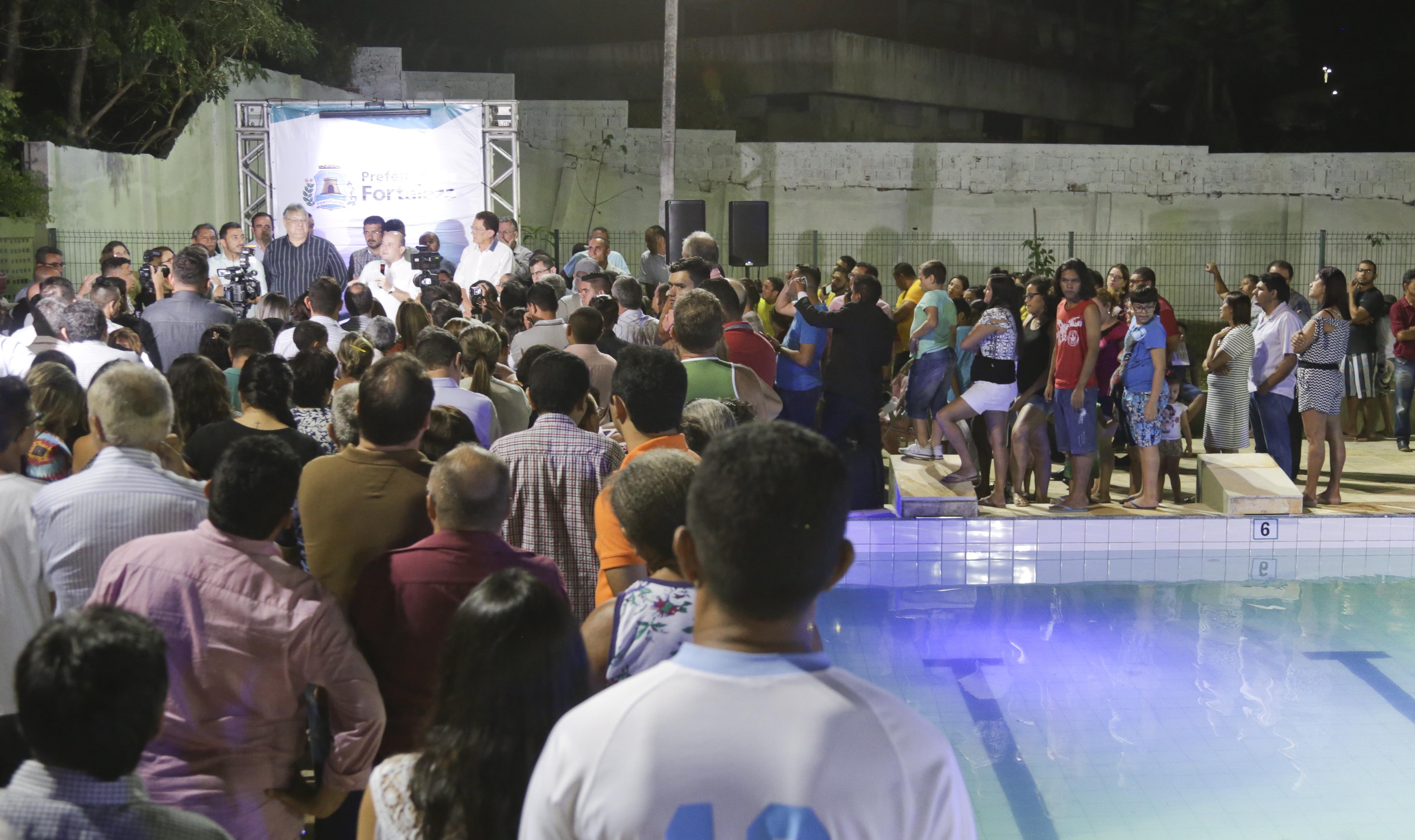 O prefeito Roberto Cláudio inaugurou o parque aquático do Centro Social Urbano (CSU) do Conjunto Ceará (Regional V) e a nova Praça Santa Maria, no bairro Parque Santa Maria (Regional VI), na noite desta sexta-feira (14/07). Os dois equipamentos foram entregues às comunidades totalmente requalificados.