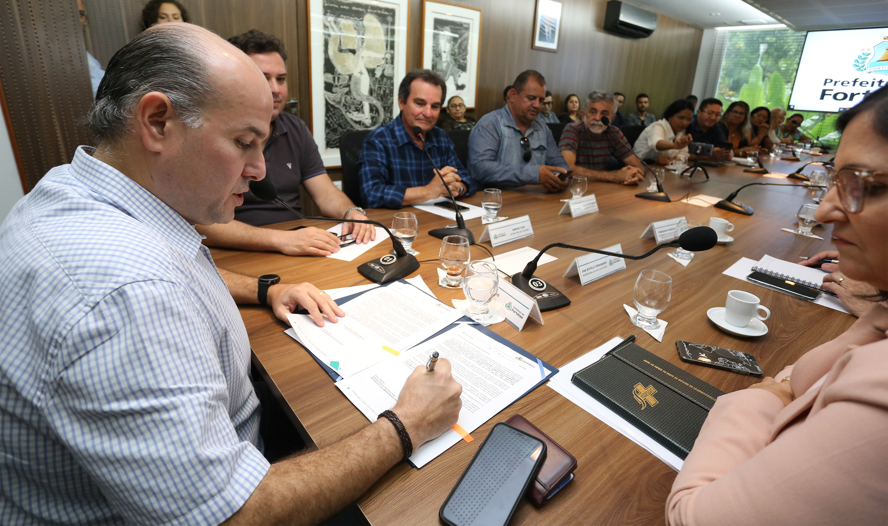 O prefeito Roberto Cláudio garantiu, nesta quinta-feira (13/02), o cumprimento do piso nacional para agentes comunitários de saúde e agentes de combate às endemias de Fortaleza. O anúncio foi feito durante reunião, realizada no Paço Municipal, entre gestores municipais e dirigentes de sindicatos que representam as categorias de servidores da saúde.