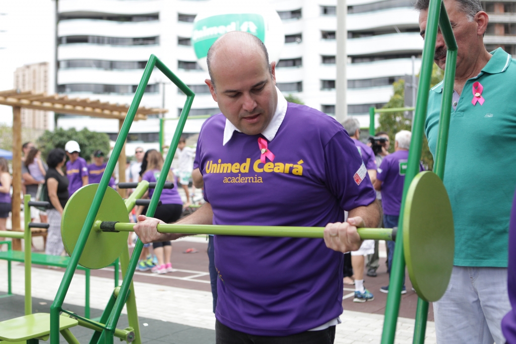 O prefeito de Fortaleza, Roberto Cláudio, inaugurou, neste domingo (20/09), a primeira academia ao ar livre de Fortaleza, no Parque do Cocó, parceria entre Prefeitura e Unimed Ceará. “São quase 120 praças da cidade e mais de 50 playgrounds infantis já instalados em Fortaleza. O objetivo é promover uma relação mais solidária entre os cidadãos fortalezenses, para que possam desfrutar mais dos espaços públicos”, disse o Prefeito.