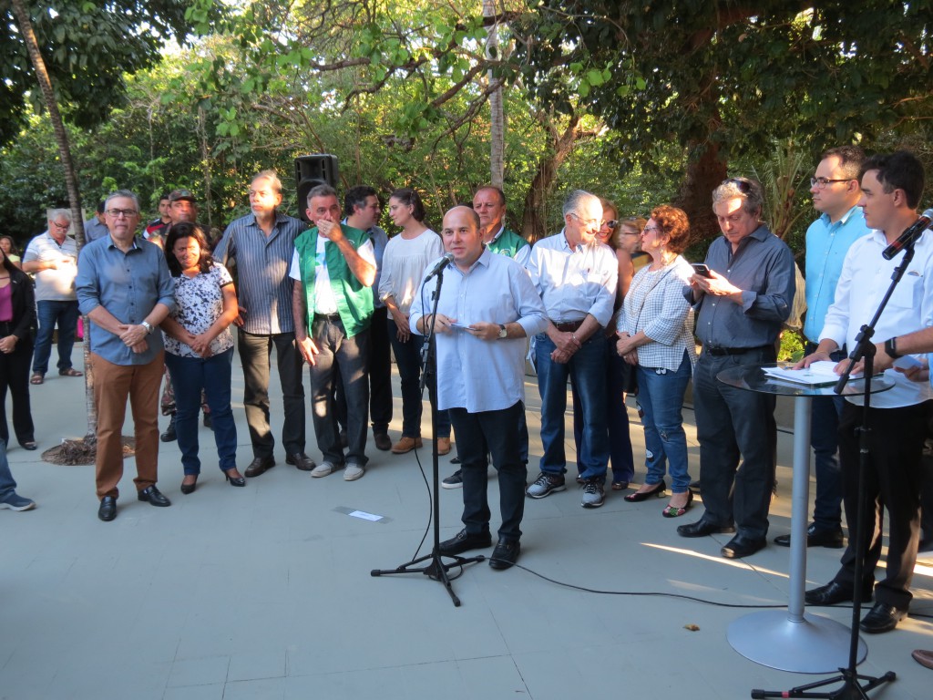 Após a solenidade de descerramento da placa de inauguração, o Prefeito assinou a ordem de serviço para o início da construção do viveiro que produzirá mudas de espécies nativas de manguezais.
