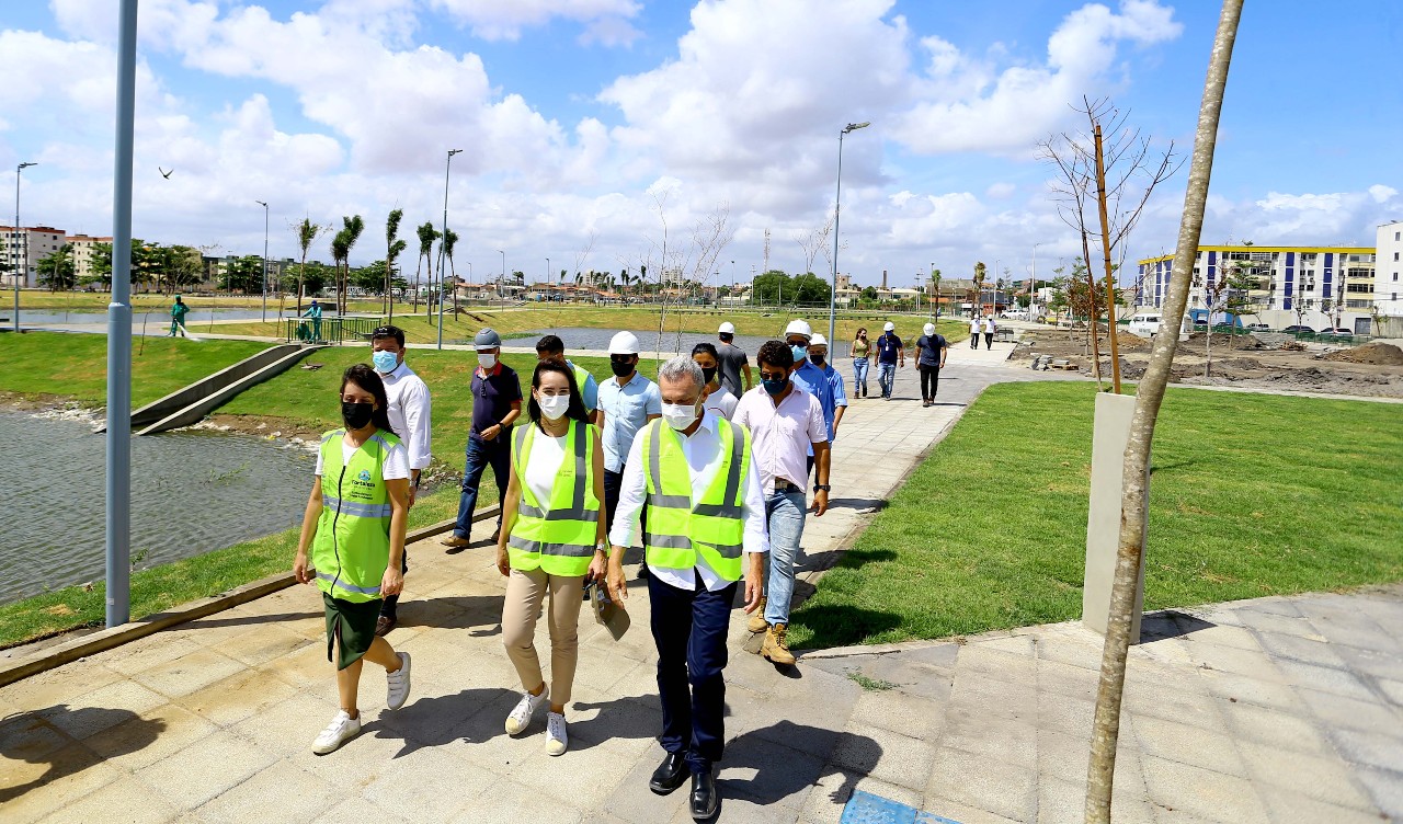 O prefeito de Fortaleza, José Sarto, vistoriou, na manhã desta quinta-feira (02/12), as obras do Parque Rachel de Queiroz, maior gerido pelo município, que conta com 10 km de extensão e área total de aproximadamente 203 hectares. As intervenções de urbanização e paisagismo, que englobam os trechos 1, 2, 5 e 6 do projeto, estão 90% concluídas. A previsão é entregar a primeira fase do Parque Rachel de Queiroz em janeiro de 2022.