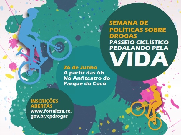 Estão abertas as inscrições para o II Passeio Ciclístico “Pedalando pela Vida”. O evento será promovido pela Prefeitura de Fortaleza, por meio da Coordenadoria Especial de Políticas sobre Drogas (CPDrogas), em parceria da Secretaria Especial de Políticas sobre Drogas do Estado (SPD). O passeio está marcado para o dia 26 de junho (domingo), com saída do Anfiteatro do Parque do Cocó. Evento, em alusão ao Dia Internacional de Enfrentamento às Drogas, tem como objetivo conscientizar as pessoas a levarem uma vida mais saudável, além de chamar a atenção da sociedade para a problemática das drogas.