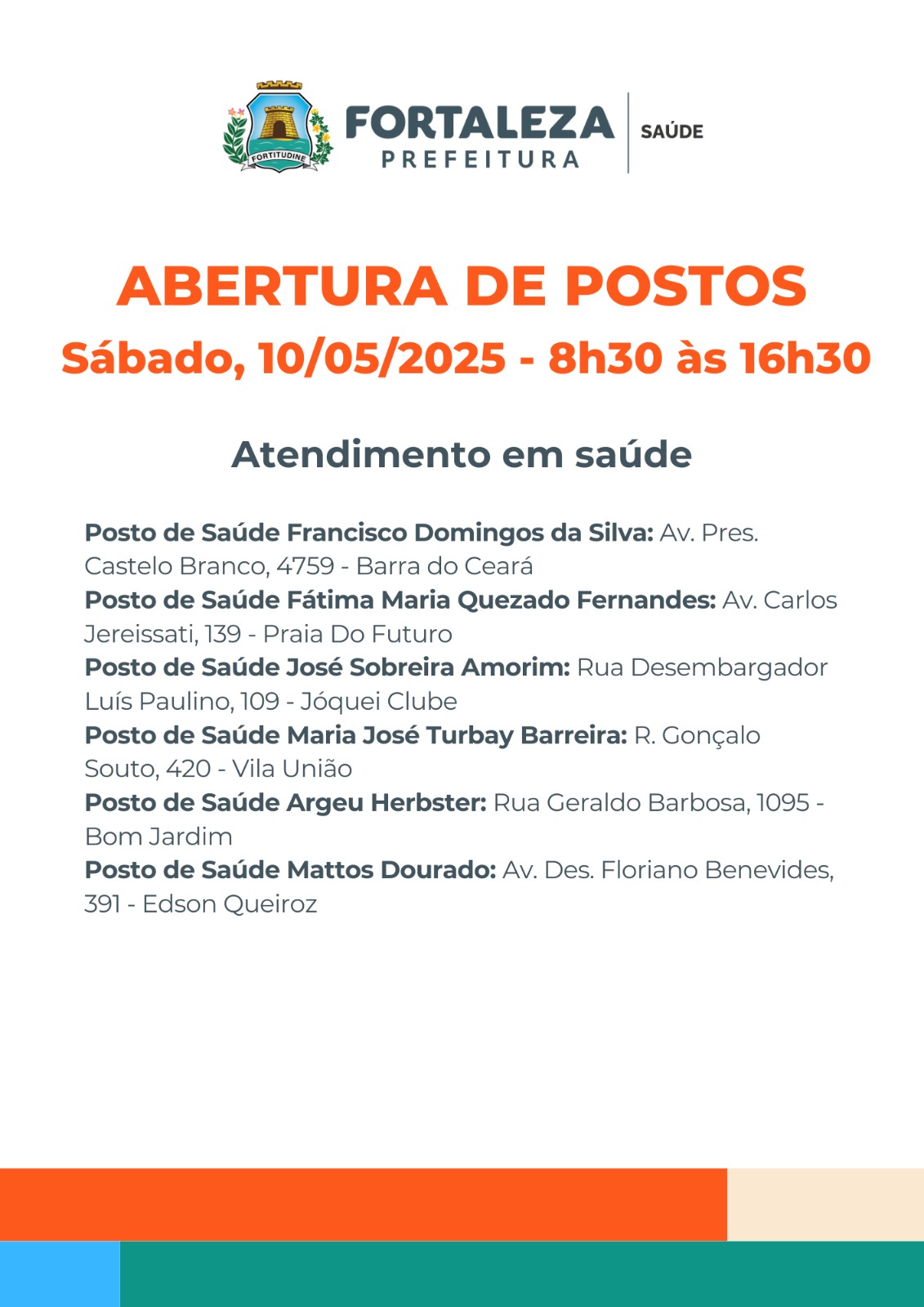 Lista dos postos com atendimento em saúde neste sábado (10/05)