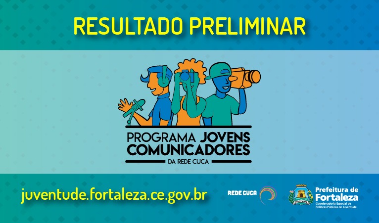 A Prefeitura de Fortaleza divulga, por meio da Coordenadoria Especial de Políticas Públicas da Juventude (CEPPJ), o resultado preliminar da 1ª fase para o Programa de Monitoria de Jovens Comunicadores de 2019 da Rede Cuca. Ao todo, 15 jovens serão selecionados para atuar na área de Comunicação durante cinco meses.