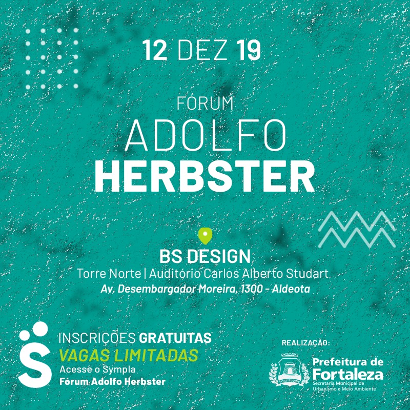 A Prefeitura de Fortaleza realiza, por meio da Secretaria Municipal de Urbanismo e Meio Ambiente (Seuma), o XII Fórum Adolfo Herbster, nesta quinta-feira (12/12), às 08h30, no BS Design Corporate Tower, no bairro Aldeota. O evento debaterá, junto à sociedade civil organizada e técnicos de diversas áreas, assuntos relevantes para fomentar o poder público, iniciativa privada e sociedade civil a planejarem integradamente o bem-estar da população de Fortaleza.