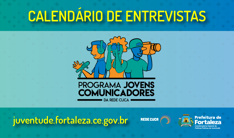 A Prefeitura de Fortaleza divulga, por meio da Coordenadoria Especial de Políticas Públicas da Juventude (CEPPJ), o calendário de entrevista para o Programa de Monitoria de Jovens Comunicadores de 2019 da Rede Cuca. Ao todo, 15 jovens serão selecionados para atuar na área de Comunicação durante cinco meses.