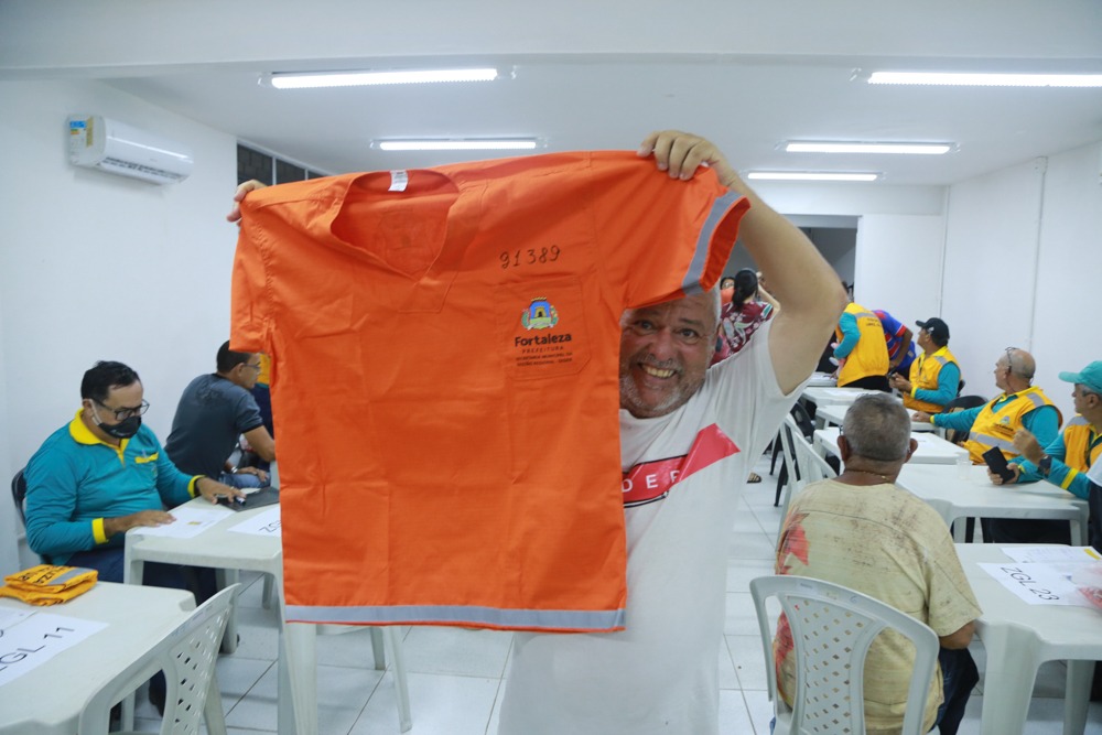 A Prefeitura de Fortaleza entregou, na última quarta-feira (01/11), o novo fardamento aos garis que fazem a varrição, capina e limpeza das áreas públicas em toda a cidade. Esses profissionais receberam um kit contendo blusa, calça, boné, meias e botas. A ação realizada pela Secretaria Municipal da Gestão Regional (Seger) tem o intuito de valorizar esses trabalhadores responsáveis por manter a cidade limpa. 382 garis vão receber o novo fardamento da Coordenadoria de Limpeza Pública (Colimp) da Seger.