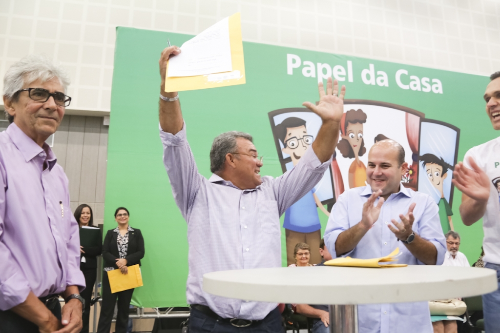 Durante a manhã deste sábado (20/09), a Prefeitura de Fortaleza, Governo do Estado do Ceará e o Tribunal de Justiça realizaram a solenidade de entrega do primeiro lote de registros de imóveis da campanha Papel da Casa. A ação possibilitou a liberação de escrituras de 1.406 imóveis, permitindo o registro da propriedade definitiva das residências construídas pelo Sistema Financeiro da Habitação (SFH), por meio da Companhia Habitação do Ceará (COHAB), no município de Fortaleza.