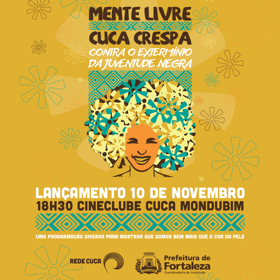 A Prefeitura de Fortaleza, por meio da Rede Cuca, lança nesta terça-feira (10/11), a partir das 18h30, a campanha Mente Livre, Cuca Crespa no cineteatro do Cuca Mondubim. Na abertura, convidados especiais vão conversar sobre o tema “Juventude Negra e Periferia, na luta contra o extermínio”. A iniciativa é alusiva ao Dia da Consciência Negra, comemorado no dia 20 de novembro. Estão programadas atividades sobre o tema para todo o mês.
