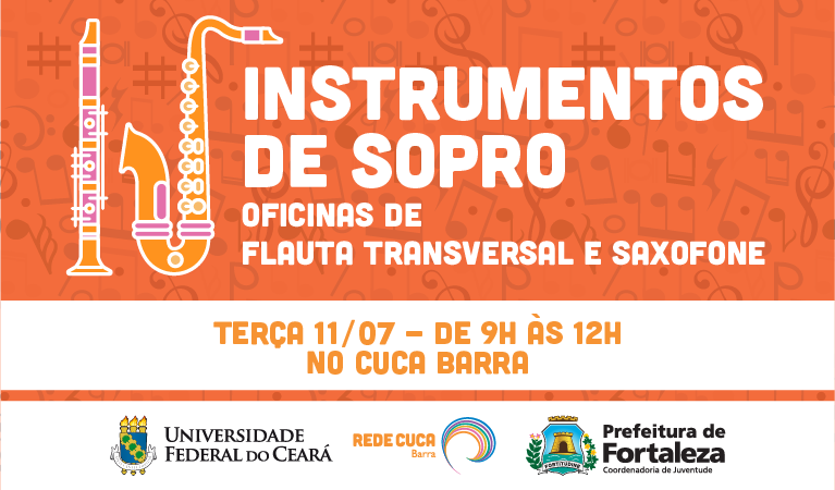 A Prefeitura de Fortaleza, por meio da Coordenadoria de Juventude, promoverá, na próxima terça-feira (11/07), das 9h às 12h, oficinas de flauta transversal e de saxofone. A ação, que acontecerá da Rede Cuca Barra, é aberta ao público de todas as idades.