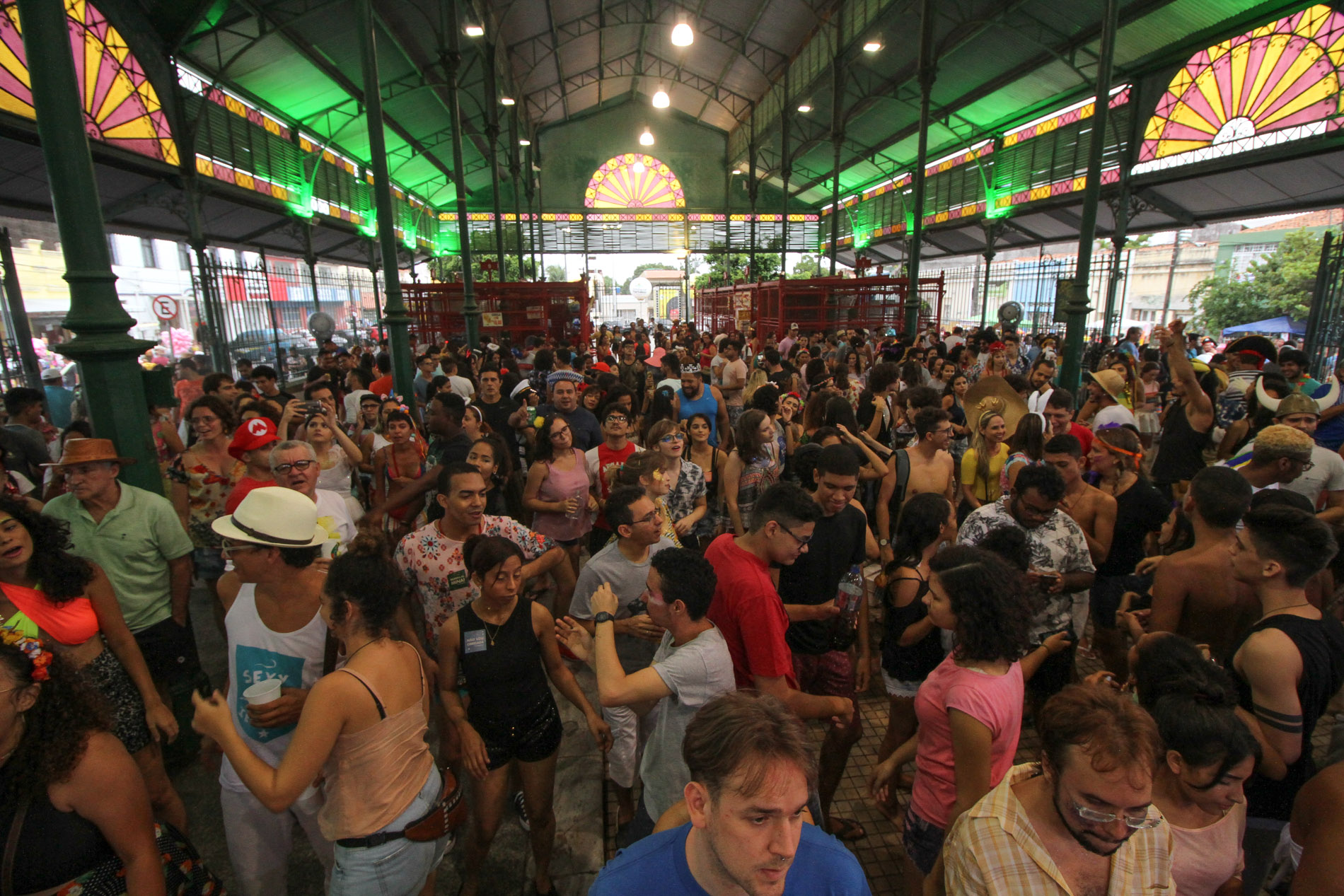 No Mercado dos Pinhões, foliões à fantasia tomaram o lugar para aproveitar o entorno do equipamento municipal e festejar com amigos e familiares. Dentro do espaço, os mais animados cantaram e dançaram ao som do Bloco As Damas Cortejam, sucesso entre os presentes.