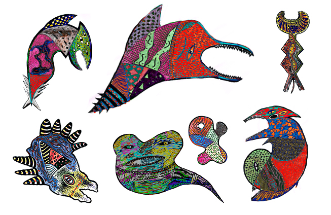 Os seres fantásticos que estão nessa exposição foram criados por jovens que participaram do curso Criação e Montagem de Exposições