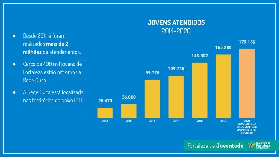 No dia 21 de fevereiro, a Rede Cuca comemora sete anos de funcionamento e assim como para o Iuri, a Rede Cuca tornou-se a segunda casa de muitos jovens. Nesse período, foram registrados 760.158 jovens atendidos e mais de 2 milhões de atendimentos em geral. Mesmo em um momento delicado como a pandemia de Covid-19, em 2020, a Rede Cuca atendeu 179.165 jovens, grande parte de forma remota por questão de segurança para tentar conter a disseminação da doença.