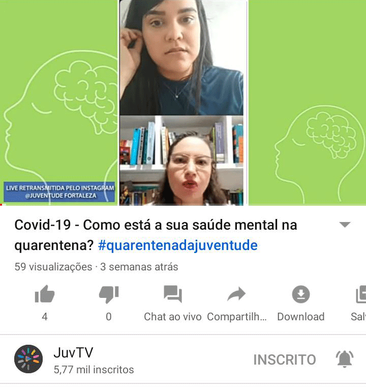 A Prefeitura de Fortaleza ampliou as atividades disponibilizadas pela Rede Cuca em atendimento psicossocial e de promoção da saúde. Novos formatos de atendimento voltados para a saúde mental dos jovens foram adotados em virtude do isolamento social ocasionado pela pandemia do novo coronavírus.