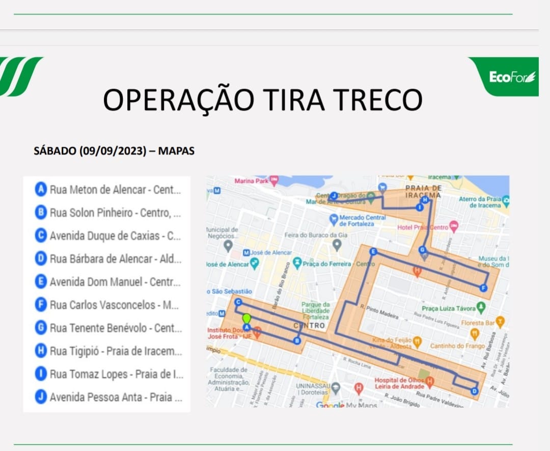 Na sexta-feira (08/09), a rota do caminhão cobre os bairros da Regional 1: Vila Velha, Barra do Ceará, Cristo Redentor, Pirambu, Carlito Pamplona, Jacarecanga, Jardim Iracema, Álvaro Weyne e Floresta. No sábado (09/09), são os bairros da Regional 12: Centro e Praia de Iracema.