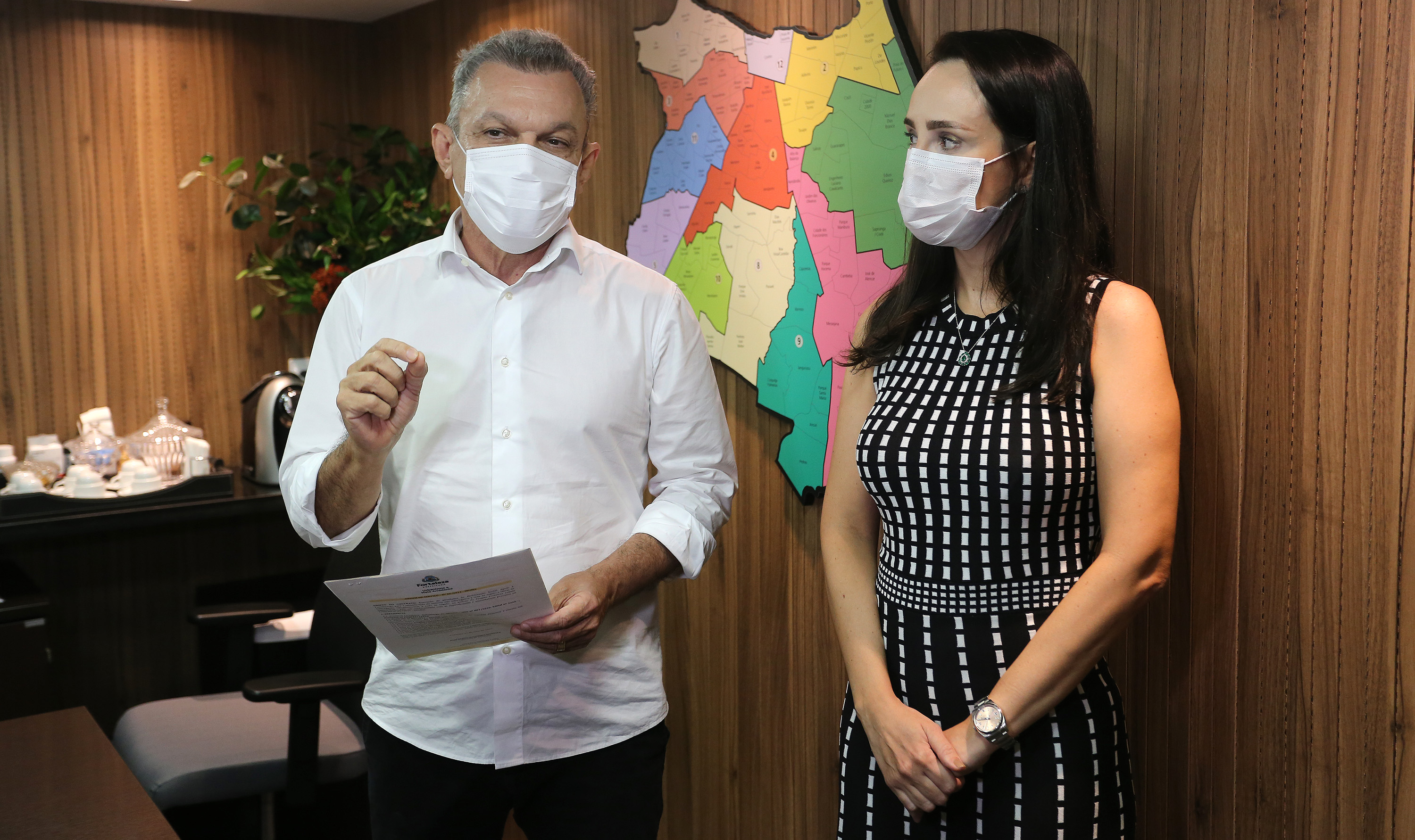 O prefeito José Sarto e a secretária do Urbanismo e Meio Ambiente, Luciana Lobo, assinaram nesta sexta-feira (04/06), a ordem de serviço para as obras que vão proporcionar a interligação à rede de esgoto de moradias de baixa renda situadas na bacia da vertente marítima, que inclui bairros como Barra do Ceará, Carlito Pamplona, Cristo Redentor, Jacarecanga e Pirambu, localizados na região oeste de Fortaleza.