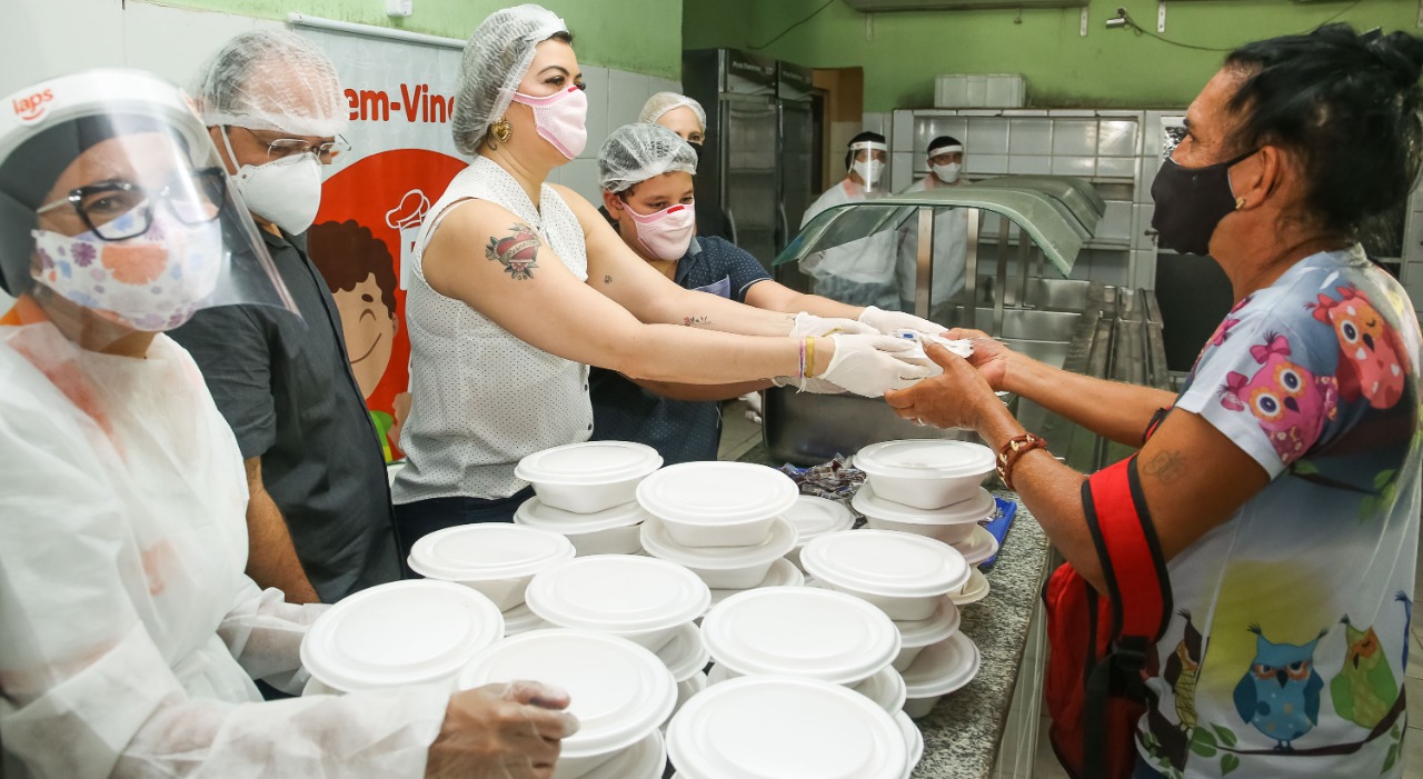 Primeira-dama de Fortaleza, Natália Herculano, participa da distribuição de duas mil quentinhas e 700 sopas