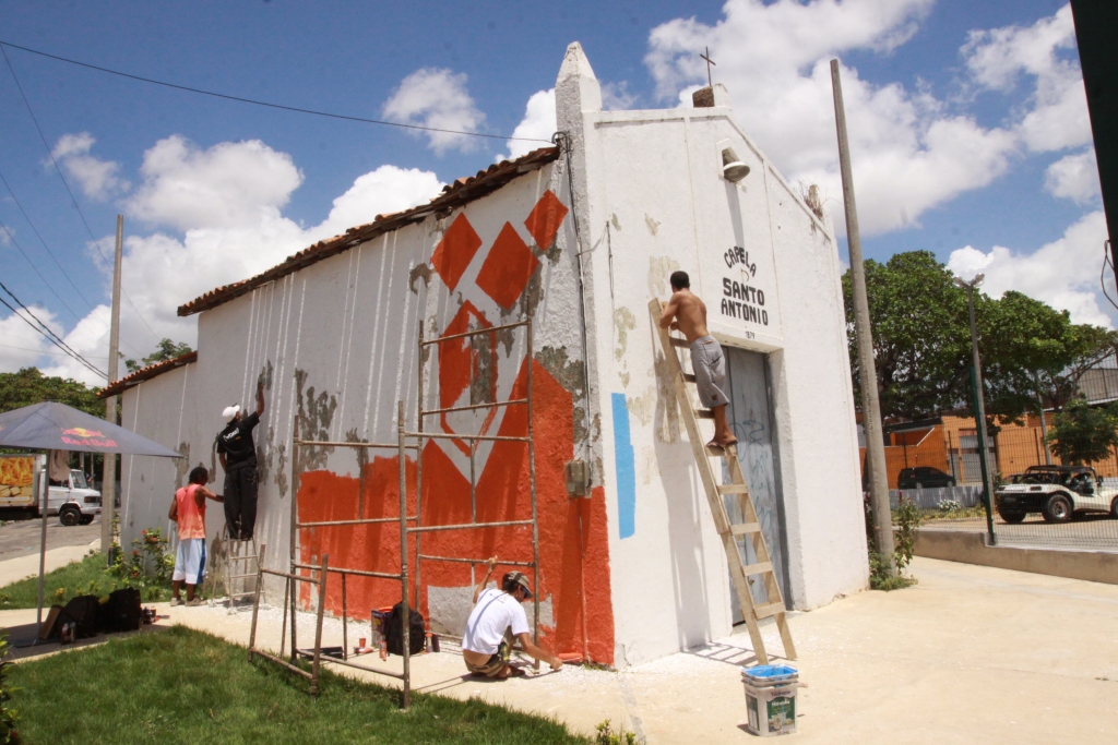 Na quinta-feira (11/4), a Capela Santo Antônio, ao lado do Centro Urbano de Arte e Cultura (Cuca) V, no bairro Mondubim, recebeu novas cores e arte. Cerca de 10 profissionais do graffitti se revezaram em trabalhar na pintura das paredes externas do espaço religioso. A atividade é...