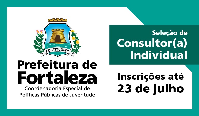 A Prefeitura de Fortaleza, por meio da Coordenadoria Especial de Políticas Públicas de Juventude (CEPPJ), segue com inscrições abertas até às 17 horas do dia 23 de julho para um processo seletivo que visa realizar a contratação de consultoria individual com conhecimento técnico sobre aval...