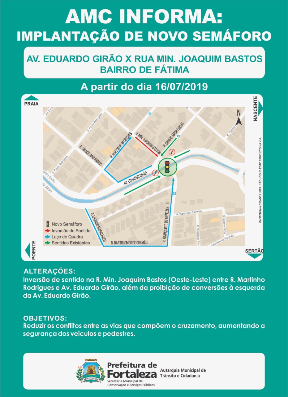A Prefeitura de Fortaleza, por meio da Autarquia de Trânsito e Cidadania (AMC), implanta nesta sexta-feira (12/08) um novo semáforo no cruzamento da Av. César Cals com a Rua Ismael Pordeus, no bairro Vicente Pinzon. O objetivo é garantir aos pedestres mais segurança durante a travessia. ...