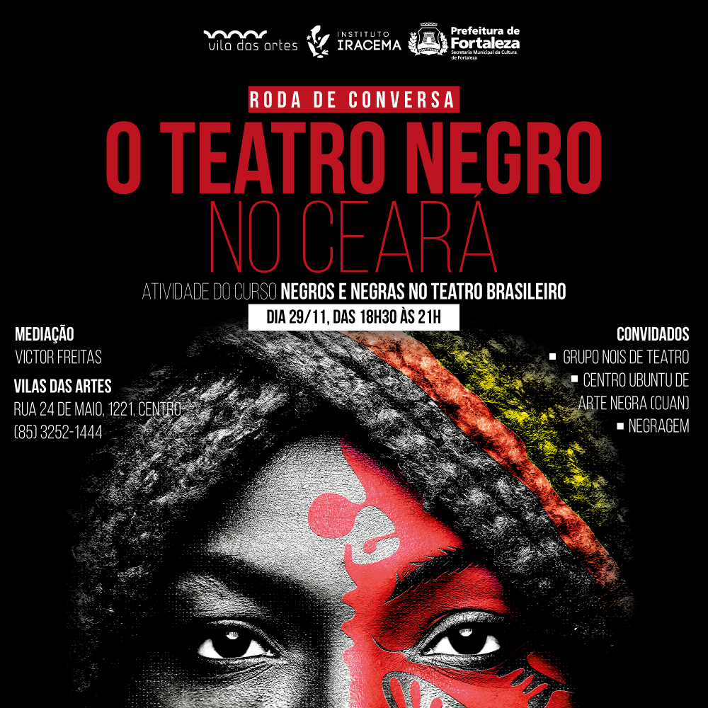 A Escola Pública de Teatro da Vila das Artes promove, nesta quinta-feira (29/11), a roda de conversa “O Teatro Negro no Ceará”, das 18h30 às 21h. A Vila das Artes é um equipamento da Prefeitura de Fortaleza, coordenado pela Secretaria Municipal da Cultura de Fortaleza (Secultfor). A roda ...Categorias