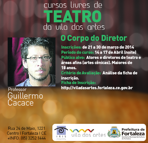 A Vila das Artes, equipamento da Prefeitura Municipal de Fortaleza, vinculado à Secretaria Municipal de Cultura (Secultfor), abre inscrições, de 10 a 24 de abril, para o curso Teatralidade e Performatividade, que é o quarto de seis Cursos Livres de Teatro que acontecer&at...Categorias