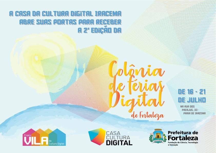 A Prefeitura de Fortaleza lança a 2ª Colônia de Férias Digital, promovida pela Casa da Cultura Digital, equipamento da Fundação de Ciência, Tecnologia e Inovação (Citinova). Durante toda a semana, de 16 a 21 de julho, jovens de todas as idades participarão de oficinas, palestras, worksho...
