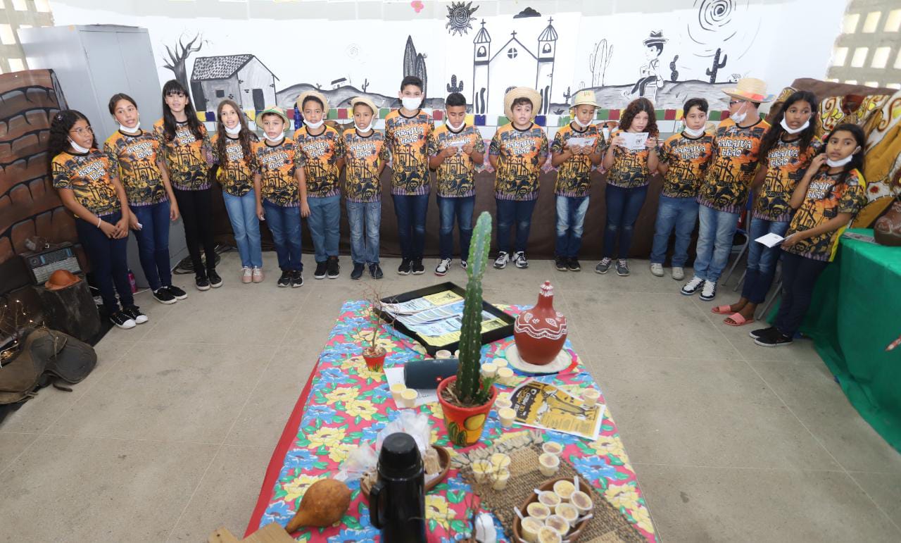 Com referências regionais nas blusas e no cenário, além de comidas típicas à mesa, duas turmas do 5º ano venceram a etapa escolar ao expor repertório didático em formato de cordel sobre os tipos textuais. Para Cláudio Freitas, um dos orientadores da sala que abordou os tipos procedimental e argumentativo, o sucesso do trabalho dos alunos é resultado de uma ação de continuidade.